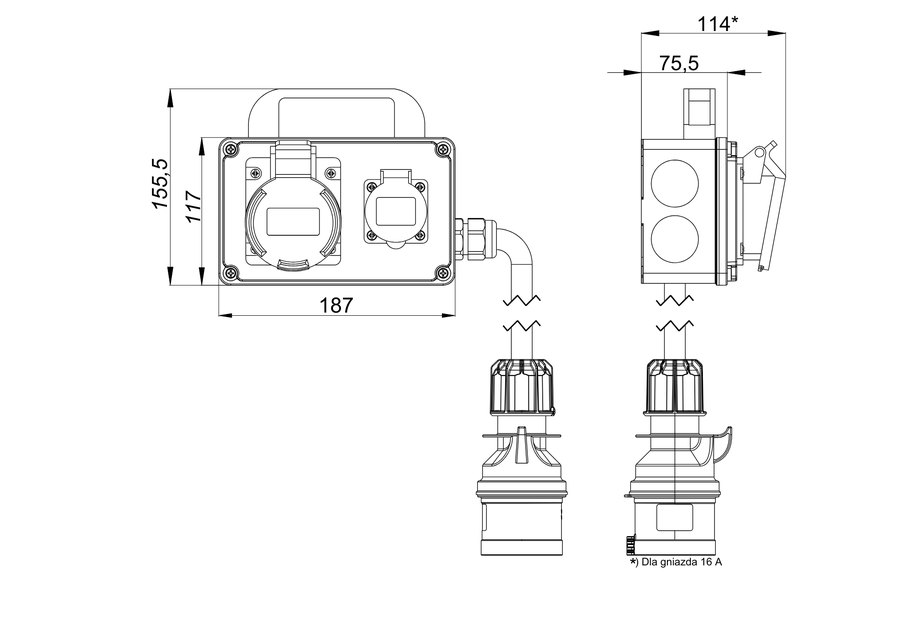 | Kabel zasilający z wtyczką | dla 16 A 5x2,5 mm² długość 1,5 m * |