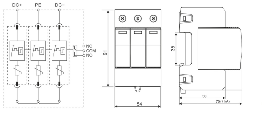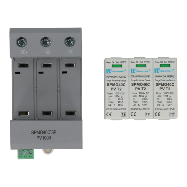 Warystorowy ogranicznik przepięć do instalacji fotowoltaicznych PV 3P, 1000V DC, typ 2 (klasa C)