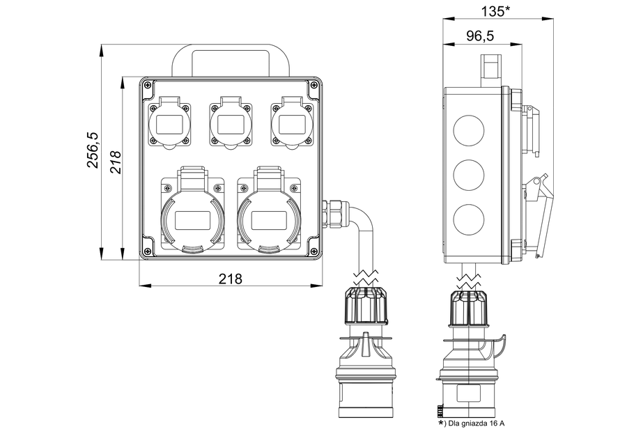 | Kabel zasilający z wtyczką | dla 16 A 5x2,5 mm² długość 1,5 m * |