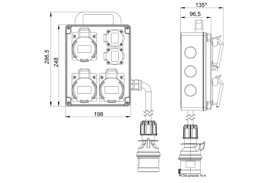 | Kabel zasilający z wtyczką | dla 16 A 5x2,5 mm² długość 1,5 m * |