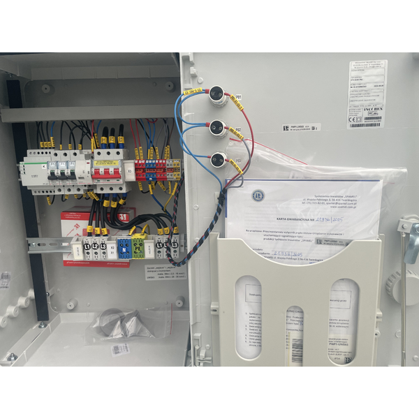 Urządzenie wykonawcze z sygnalizacją 230V mające za zadanie odłączyć zasilanie budynku lub strefy pożarowej, której dotyczy. Głównym elementem urządzenia wykonawczego PWP1-UWS63 jest rozłącznik 63A wyposażony w wyzwalacz napięciowy (wzrostowy).